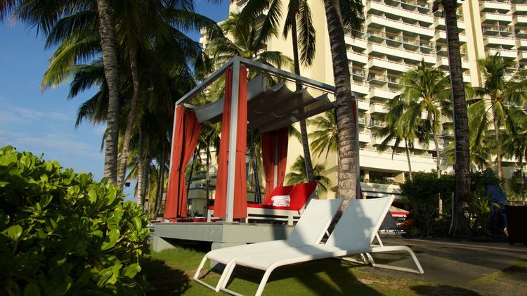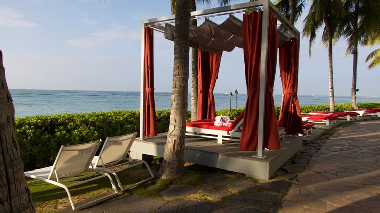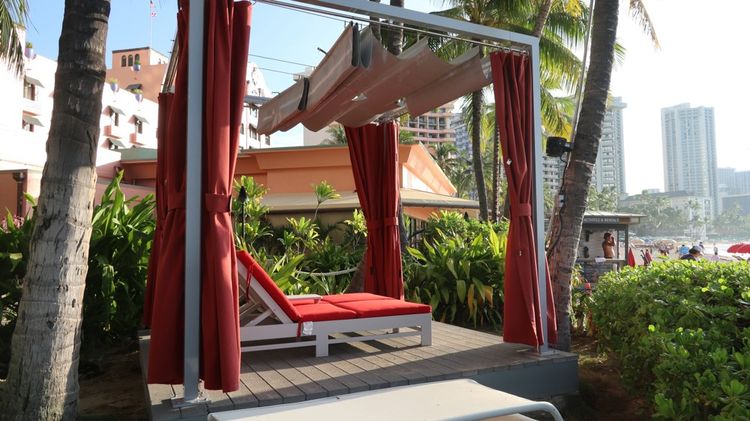 ヘルモア・ラグジュアリーカバナはプライバシーカーテン付きカバナの中に2つのクッション付きの長椅子があるので、ゆっくりとお過ごしいただけます。また、カバナの外にも2つのビーチチェアがあります。 含まれるアメニティ: 冷たいボトルウォーター ジュース ローカルのスナック ご利用対象:シェラトンワイキキ、および、ロイヤルハワイアンにご宿泊のお客様 数に限りがあるので、早めの予約がおすすめ。