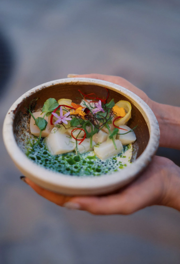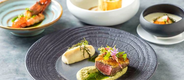 太平洋を望むオーシャンフロントに位置する「Azure」では、地元ハワイの新鮮なシーフードを使った上質なダイニング体験をお楽しみいただけます。毎朝ホノルル・フィッシュオークションで厳選された地元の魚を使い、丁寧に仕上げた料理は、5品のテイスティングコースメニューでじっくり味わうのがおすすめです。