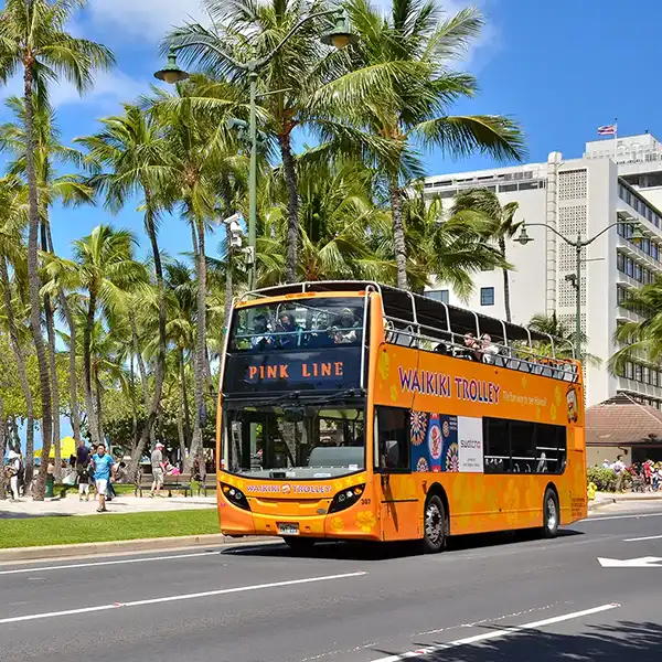 ハワイ観光の定番!ワイキキトロリー ハワイを満喫するなら外せないのが「ワイキキトロリー」。 開放的なオープンエアの車体で、オアフ島の人気スポットを巡る乗り降り自由の観光トロリーバスです。 ワイキキビーチやダイヤモンドヘッド、カメハメハ大王像、イオラニ宮殿、シーライフパークなどの定番観光地はもちろん、アラモアナセンターやカカアコ、チャイナタウンといったショッピングやグルメスポットも網羅。陽気なロコドライバーのガイドを聞きながら、ハワイの風を感じる心地よい時間をお楽しみください。 ワイキキトロリーには、それぞれテーマの異なる4つのラインがあり、どのラインも乗り降り自由。 気になる場所で途中下車して観光やお食事を楽しんだり、そのまま乗ってドライブ気分で景色を満喫したりと、楽しみ方はあなた次第です。 自分のペースで、自分だけのハワイ観光を満喫しましょう! 詳細は、ワイキキトロリーの公式日本語サイトを参照ください。 https://waikikitrolley.com/jp/